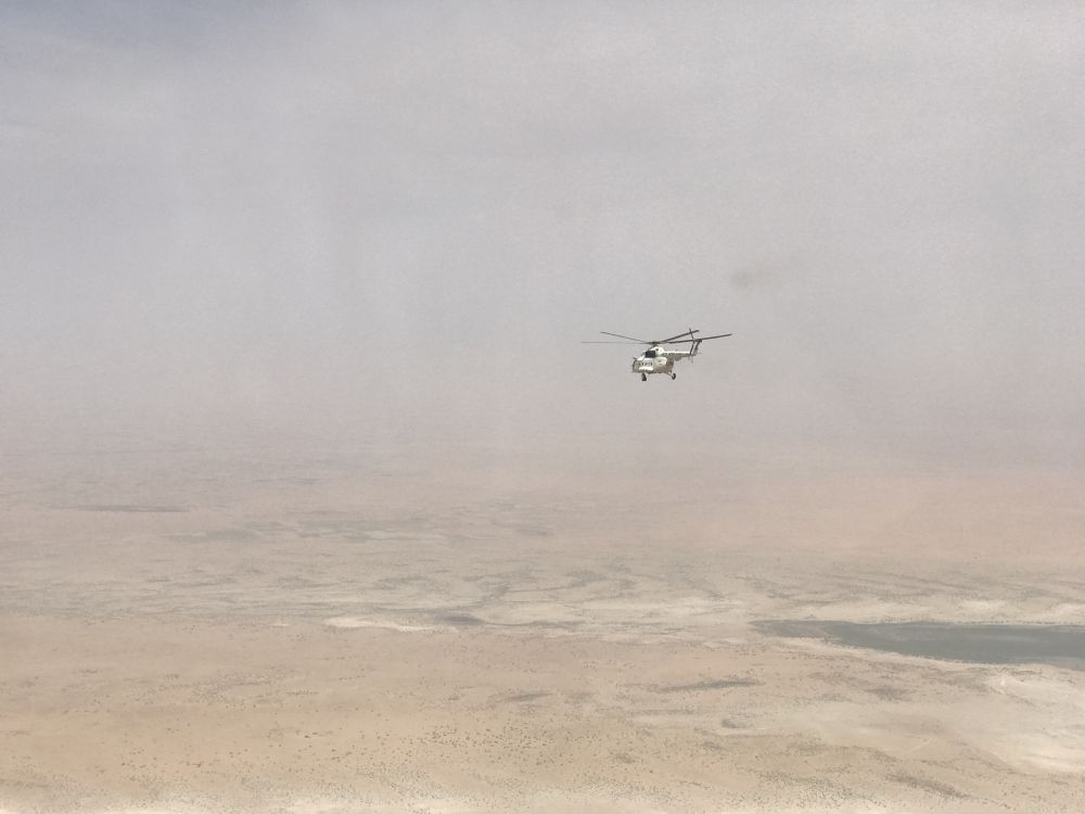 2017年8月8日,中國首支維和直升機(jī)分隊(duì)直升機(jī)飛行在蘇丹達(dá)爾富爾任務(wù)區(qū)上空。