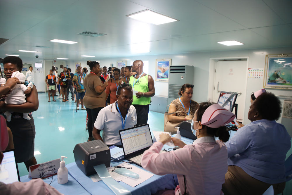2024年8月12日,中國海軍“和平方舟”號(hào)醫(yī)院船在莫桑比克馬普托開展醫(yī)療服務(wù)。