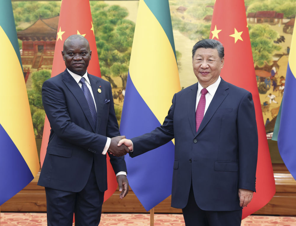 9月4日下午,國家主席習近平在北京人民大會堂會見來華出席中非合作論壇北京峰會的加蓬總統(tǒng)恩圭馬。新華社記者 姚大偉 攝