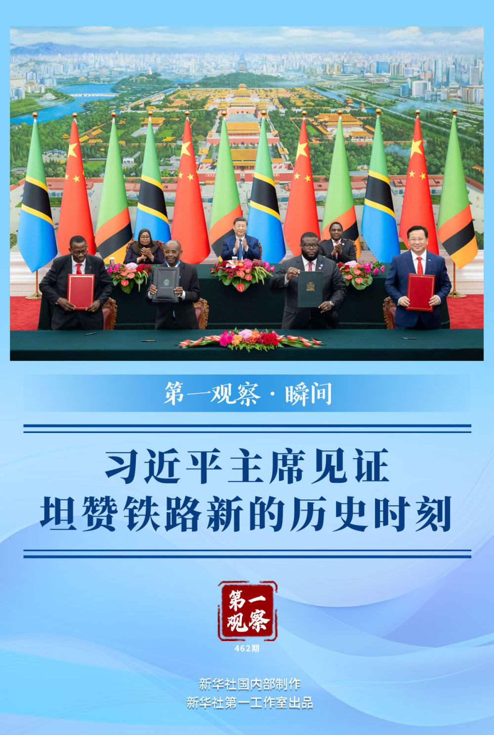 新華社記者用鏡頭記錄下又一歷史時刻——習近平主席同來華出席中非合作論壇北京峰會的坦桑尼亞總統(tǒng)哈桑、贊比亞總統(tǒng)希奇萊馬,在這里共同見證簽署《坦贊鐵路激活項目諒解備忘錄》。簽署完畢,現(xiàn)場熱烈的掌聲經(jīng)久不息。