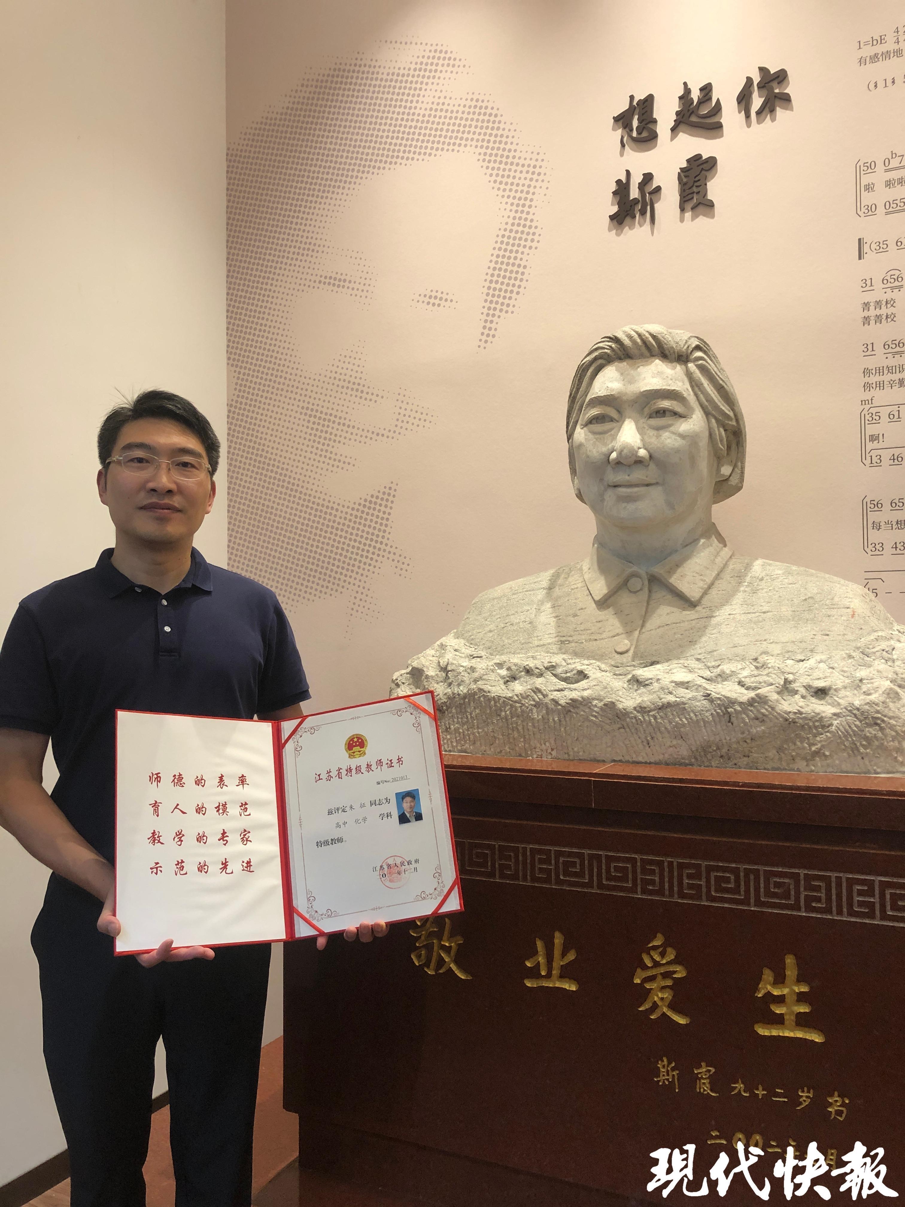 今年9月的一個(gè)下午,朱征走進(jìn)南京市中華中學(xué)高一的課堂,為學(xué)生們上化學(xué)課。朱征是江蘇省化學(xué)特級(jí)教師,也是中華中學(xué)校長(zhǎng),已經(jīng)從教24年。他的另一個(gè)身份,是著名教育家斯霞最小的孫輩,從斯霞老師算起,家中三代人出了11位教師。