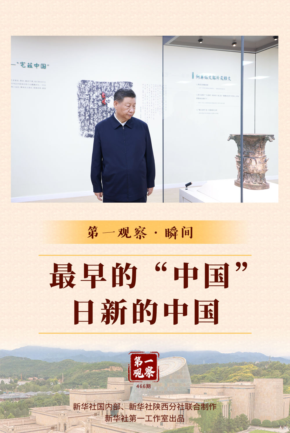 新華社記者的鏡頭定格了這樣的瞬間:總書記在一件國寶級(jí)青銅器——何尊前駐足凝視,細(xì)致察看。