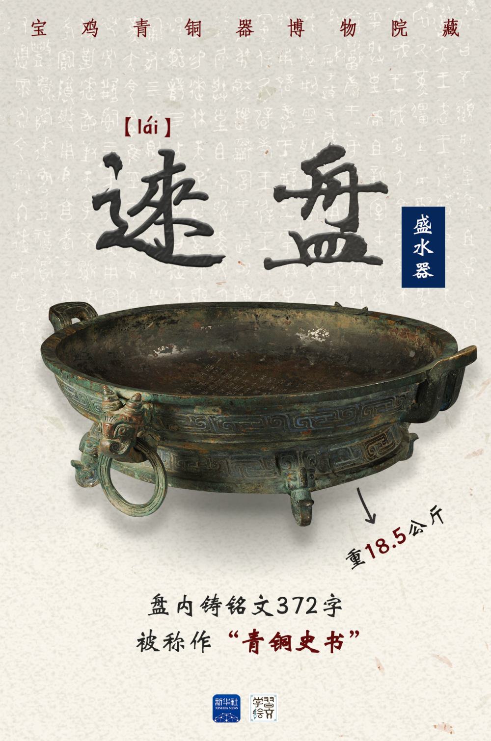 這件青銅器是被稱作“青銅史書(shū)”的逨盤。盤內(nèi)鑄銘文372字,完整記錄了單氏家族八代人輔佐西周12位周王征戰(zhàn)、理政、管治林澤的重要史事。從銘文中可看出,周人將家族命運(yùn)和國(guó)家命運(yùn)緊密結(jié)合,也是后來(lái)儒家“修身、齊家、治國(guó)、平天下”的思想基礎(chǔ)。