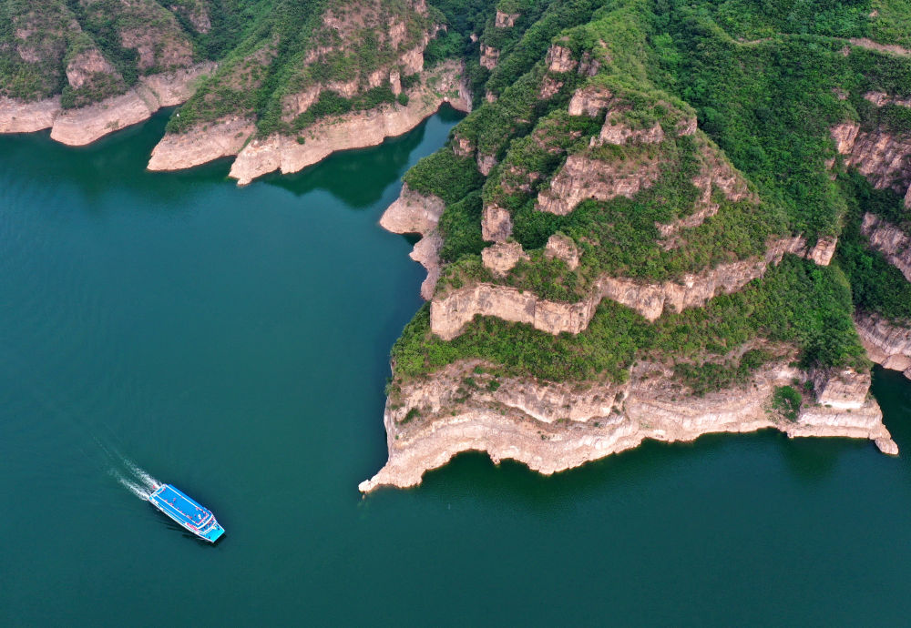 2024年5月28日在河南省濟(jì)源市拍攝的黃河三峽景色(無(wú)人機(jī)照片)。