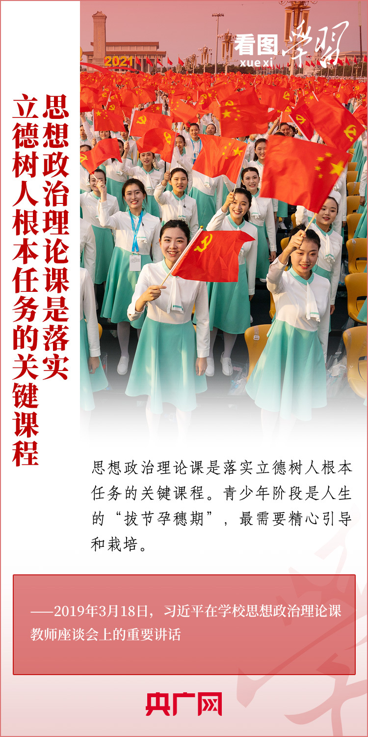 思想政治理論課是落實(shí)立德樹人根本任務(wù)的關(guān)鍵課程,事關(guān)“培養(yǎng)什么人、怎樣培養(yǎng)人、為誰培養(yǎng)人”的根本性問題。辦好思政課,是習(xí)近平總書記非常關(guān)心的一件事??倳洀?qiáng)調(diào),要“不斷加強(qiáng)和改進(jìn)新時代學(xué)校思想政治教育,教育引導(dǎo)青少年學(xué)生堅(jiān)定馬克思主義信仰、中國特色社會主義信念、中華民族偉大復(fù)興信心,立報(bào)國強(qiáng)國大志向、做挺膺擔(dān)當(dāng)奮斗者?!币黄饋韺W(xué)習(xí)!