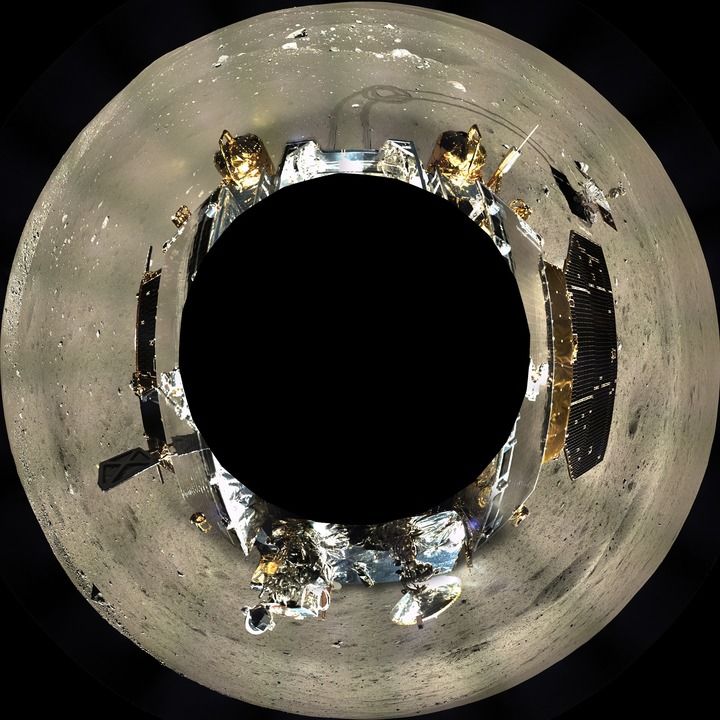 這是嫦娥三號(hào)地形地貌相機(jī)拍攝的著陸器周邊360°范圍的全景鑲嵌影像圖,采用方位投影方式表達(dá)(2013年12月17日至12月18日攝)。新華社發(fā)