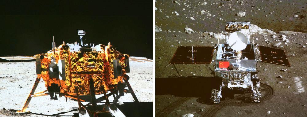 2013年12月15日晚,正在月球上開展科學(xué)探測(cè)工作的嫦娥三號(hào)著陸器和巡視器進(jìn)行互成像實(shí)驗(yàn),“兩器”順利互拍,嫦娥三號(hào)任務(wù)取得圓滿成功。