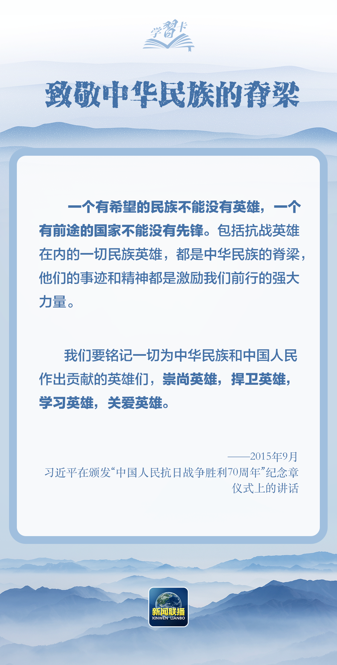 英雄烈士,是習近平總書記心之所系、情之所牽??倳浽诙鄠€場合深情講述英烈故事,引導(dǎo)全社會崇尚英雄、捍衛(wèi)英雄、學習英雄、關(guān)愛英雄。