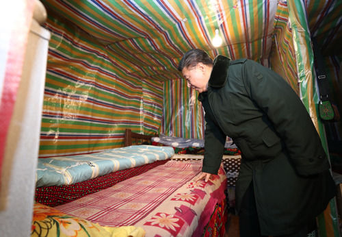 一天之內,橫跨兩省市,足跡覆蓋農村、社區(qū)、學校等7處考察點,冒著嚴寒而往,沐著夜色而歸,只因“心里一直惦念著災區(qū)的人民群眾”。