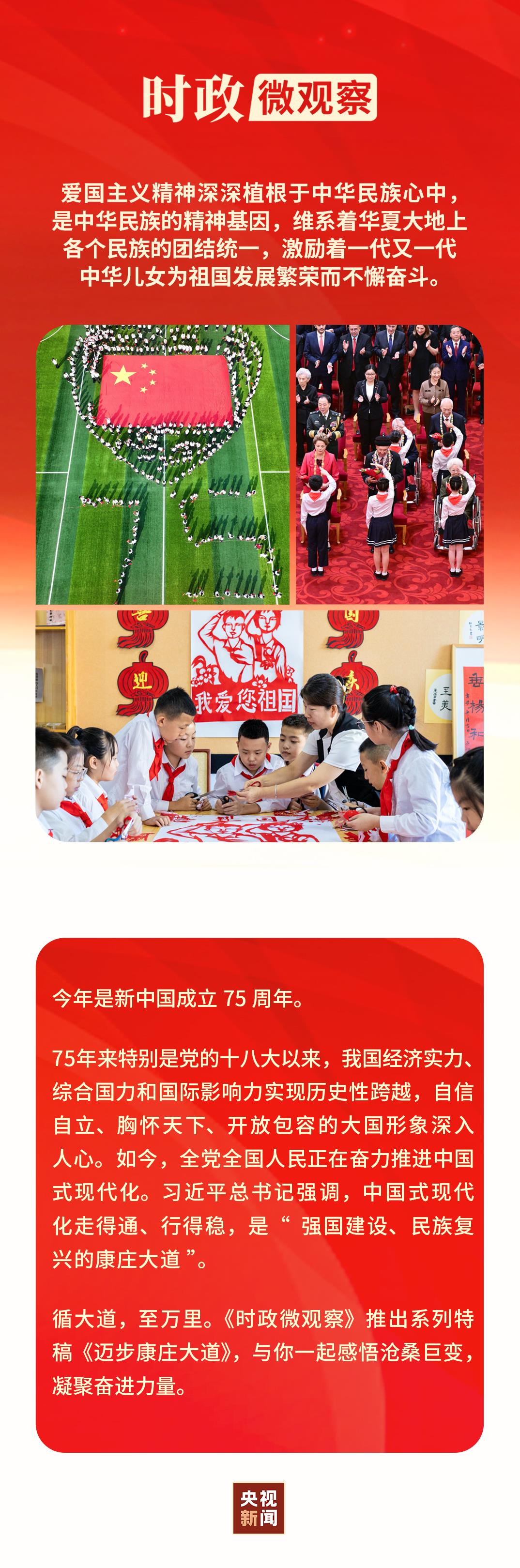 實現(xiàn)中華民族偉大復興的中國夢,是當代中國愛國主義的鮮明主題。新征程上,我們要凝聚起心中的愛國情、強國志,勠力同心、開拓進取,共同譜寫人民共和國更加絢麗精彩的新篇章。