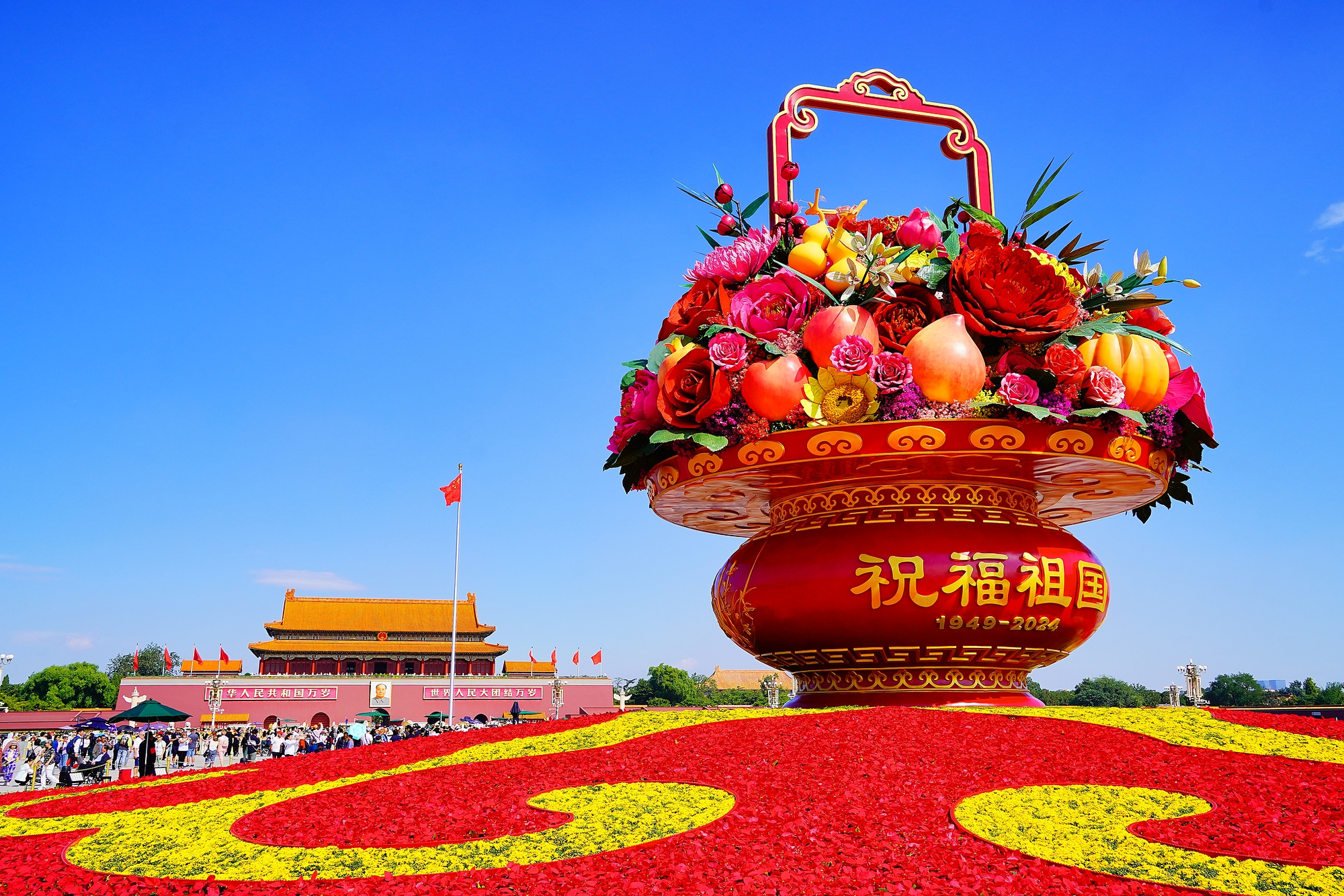 北京:天安門廣場(chǎng)上的“祝福祖國(guó)”巨型花籃