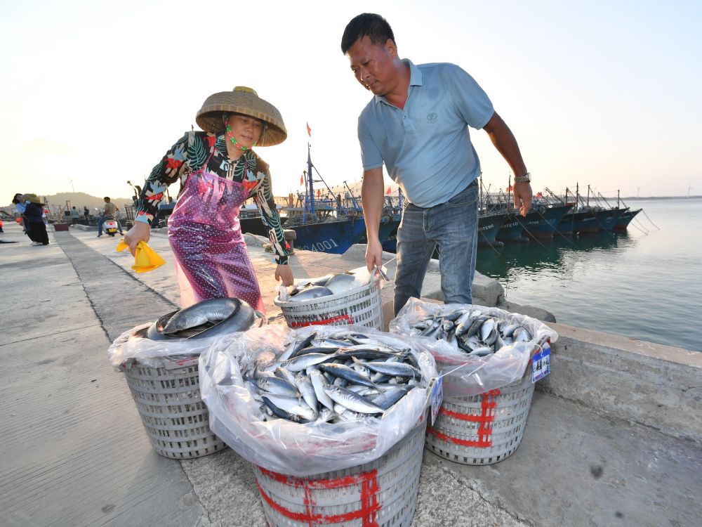 近日,澳角村村民在漁港碼頭上搬運(yùn)海產(chǎn)品。新華社記者 姜克紅 攝
