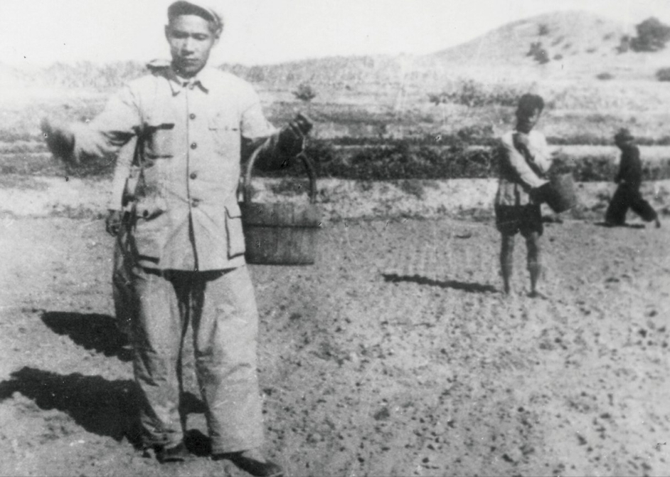 谷文昌在福建省東山縣坑北村參加播種。