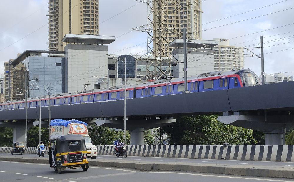 這是在印度孟買北部已開通運(yùn)行路段拍攝的地鐵列車(2022年6月22日攝)。新開發(fā)銀行向印度孟買北部地鐵項(xiàng)目提供了貸款,項(xiàng)目第一部分已于2022年4月開通運(yùn)營(yíng),緩解了沿線地區(qū)的城市交通壓力。新華社發(fā)(阿西夫攝)