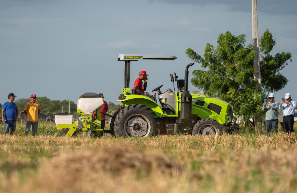 2024年2月2日,在巴西阿波迪的中巴農(nóng)業(yè)機(jī)械化合作示范農(nóng)場(chǎng),一款中國(guó)生產(chǎn)的農(nóng)機(jī)在田間示范作業(yè),吸引了人們觀看。中巴農(nóng)業(yè)機(jī)械化合作示范農(nóng)場(chǎng)旨在助力巴西農(nóng)業(yè)生產(chǎn),促進(jìn)中小農(nóng)戶減貧和鄉(xiāng)村振興。