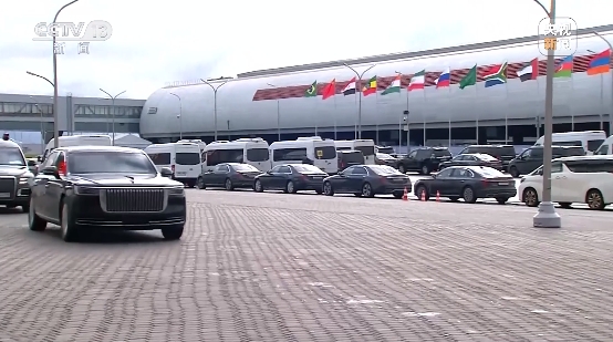 △“金磚+”領(lǐng)導人對話會現(xiàn)場的旗陣。(總臺央視記者程鋮拍攝)