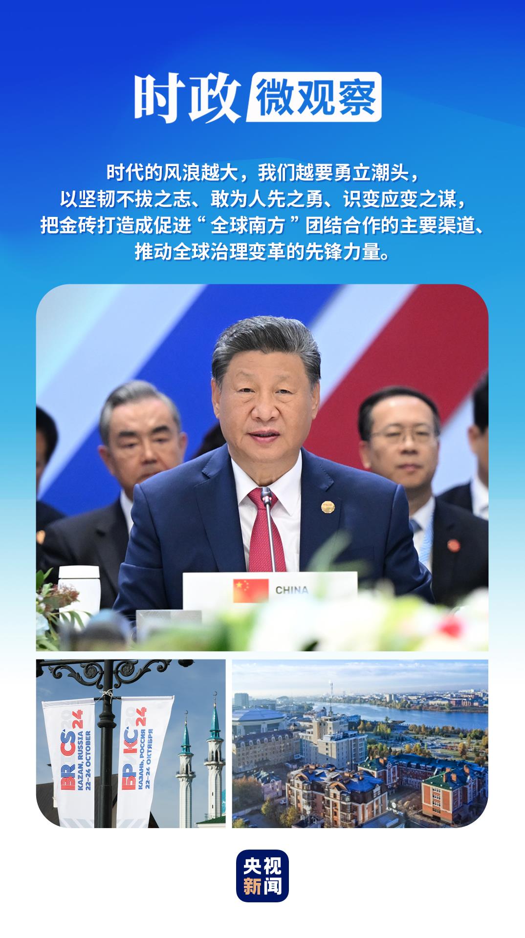 喀山之行的一系列密集活動(dòng)中,習(xí)近平主席深刻闡釋“精神力量”與“挺膺擔(dān)當(dāng)”,為開(kāi)創(chuàng)“大金磚合作”高質(zhì)量發(fā)展新局面引領(lǐng)航向?!稌r(shí)政微觀察》為你解讀。