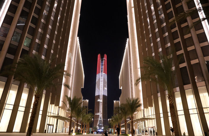這是2024年10月21日拍攝的埃及新行政首都中央商務區(qū)夜景。新華社記者 王東震 攝