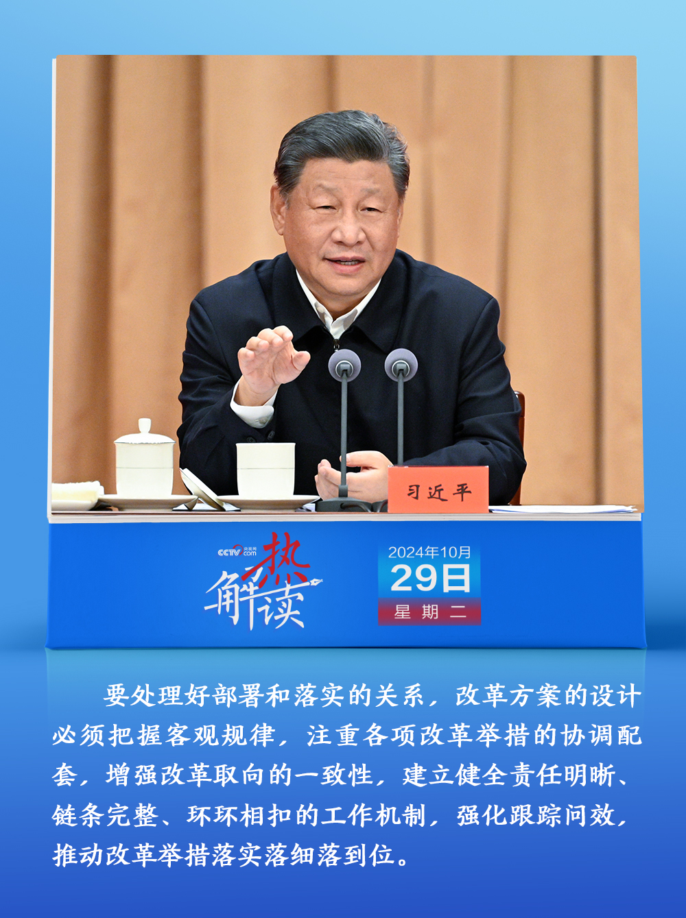 熱解讀10月29日,省部級(jí)主要領(lǐng)導(dǎo)干部學(xué)習(xí)貫徹黨的二十屆三中全會(huì)精神專題研討班開班。在開班式上,習(xí)近平總書記明確提出要“處理好部署和落實(shí)的關(guān)系”,“建立健全責(zé)任明晰、鏈條完整、環(huán)環(huán)相扣的工作機(jī)制,強(qiáng)化跟蹤問效,推動(dòng)改革舉措落實(shí)落細(xì)落到位”。