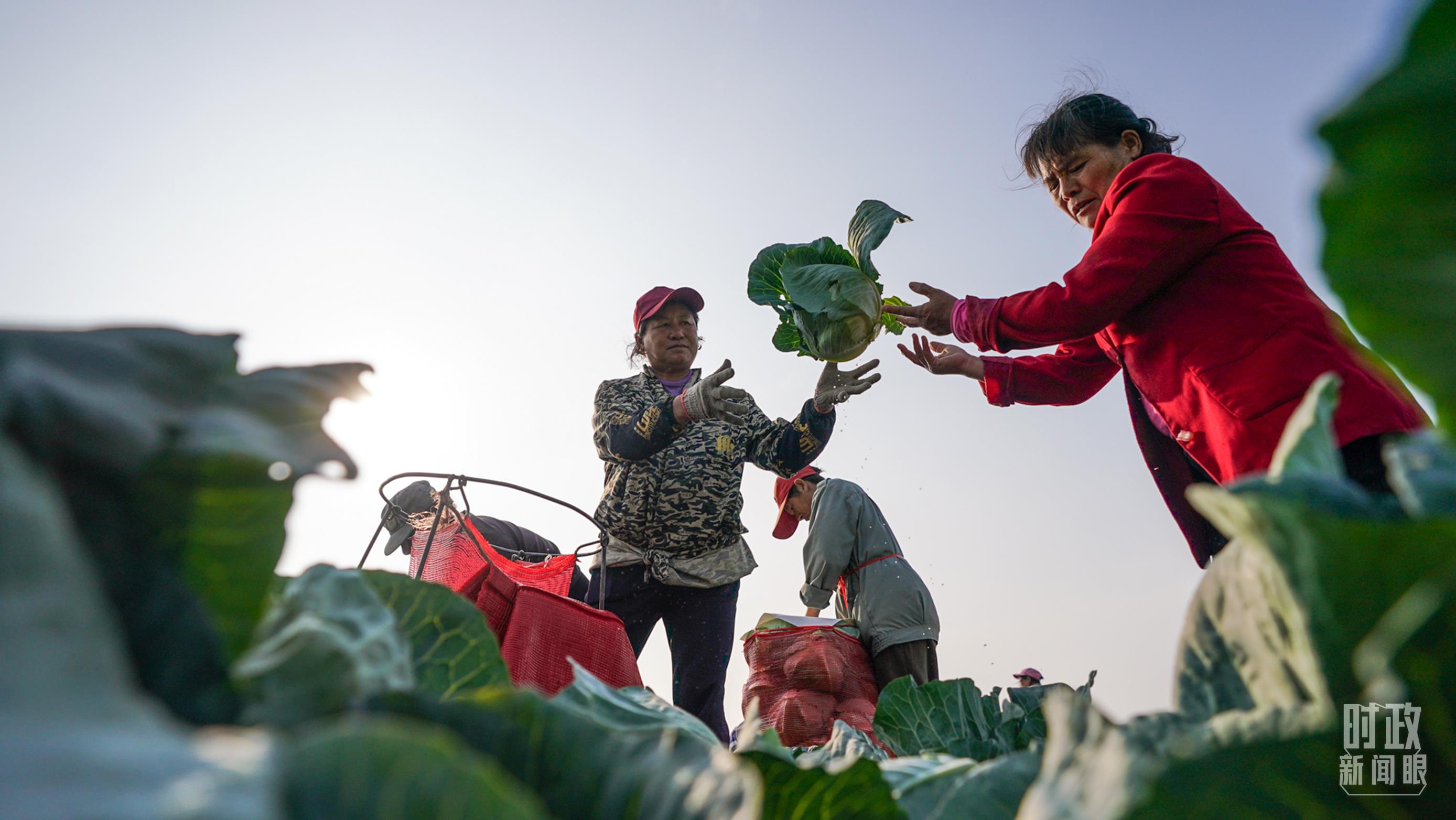△四邑村村民正在采收蔬菜。(總臺記者李晉拍攝)
