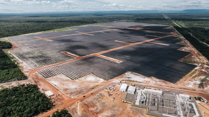 這是2024年6月7日在巴西皮奧伊州拍攝的由中國(guó)國(guó)家電力投資集團(tuán)公司(國(guó)家電投)巴西公司投資并主導(dǎo)建設(shè)的馬蘭加圖光伏電站(無(wú)人機(jī)照片)。