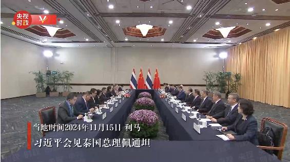 當?shù)貢r間11月15日,國家主席習近平在利馬出席亞太經合組織領導人非正式會議期間會見泰國總理佩通坦。