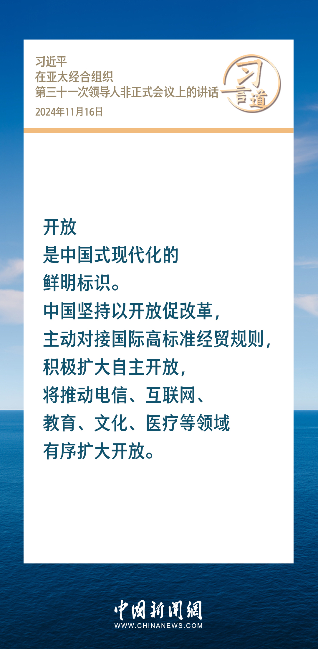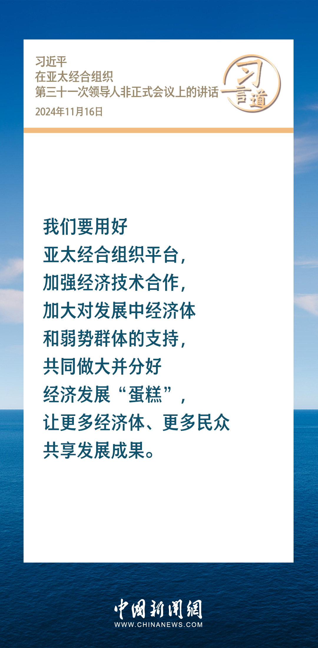 當(dāng)?shù)貢r(shí)間11月16日,國(guó)家主席習(xí)近平出席亞太經(jīng)合組織第三十一次領(lǐng)導(dǎo)人非正式會(huì)議并發(fā)表重要講話。習(xí)近平指出——