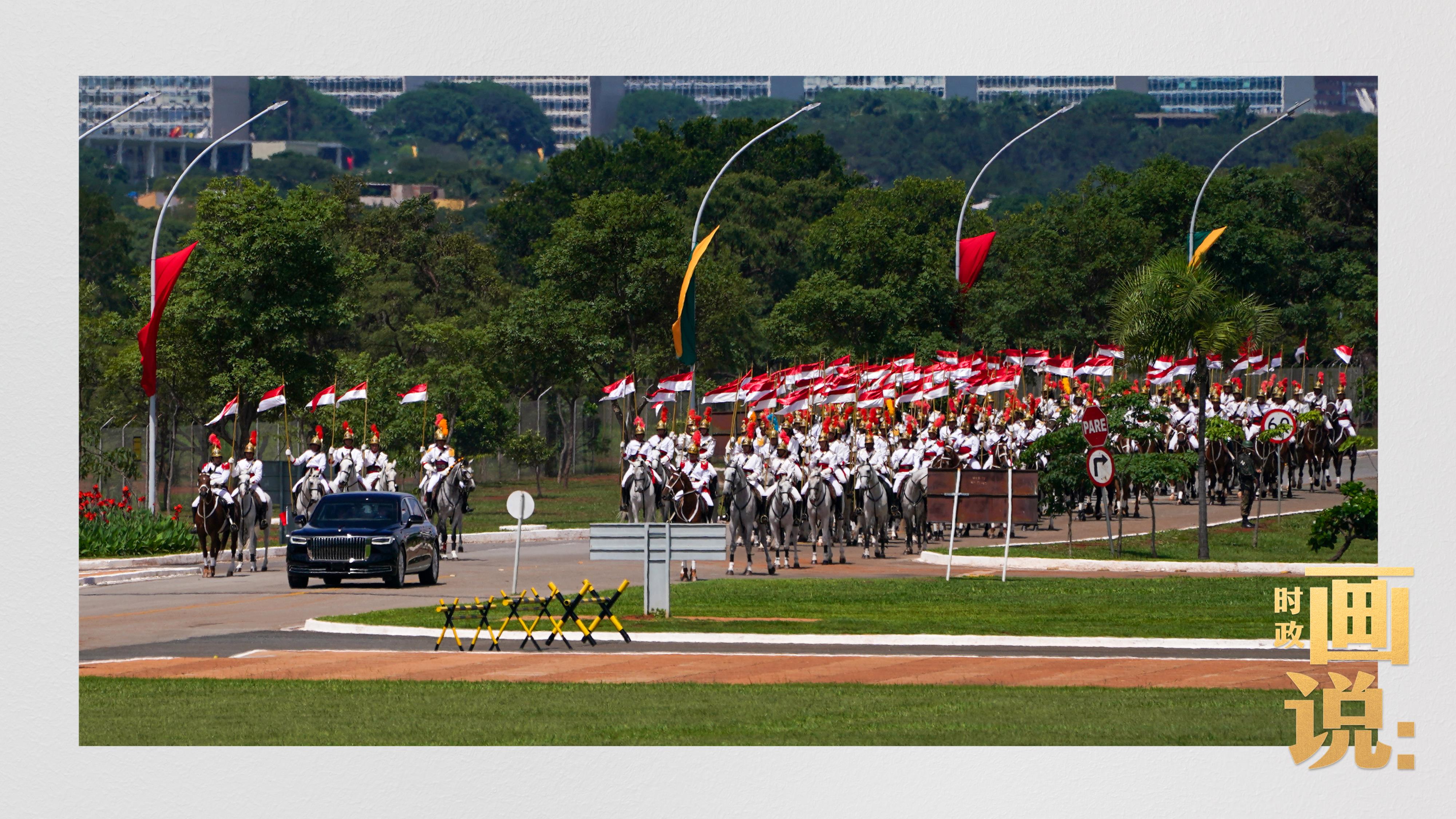 當地時間11月20日,習近平主席乘車抵達位于巴西利亞的巴西總統(tǒng)官邸,出席盧拉總統(tǒng)舉行的歡迎儀式。