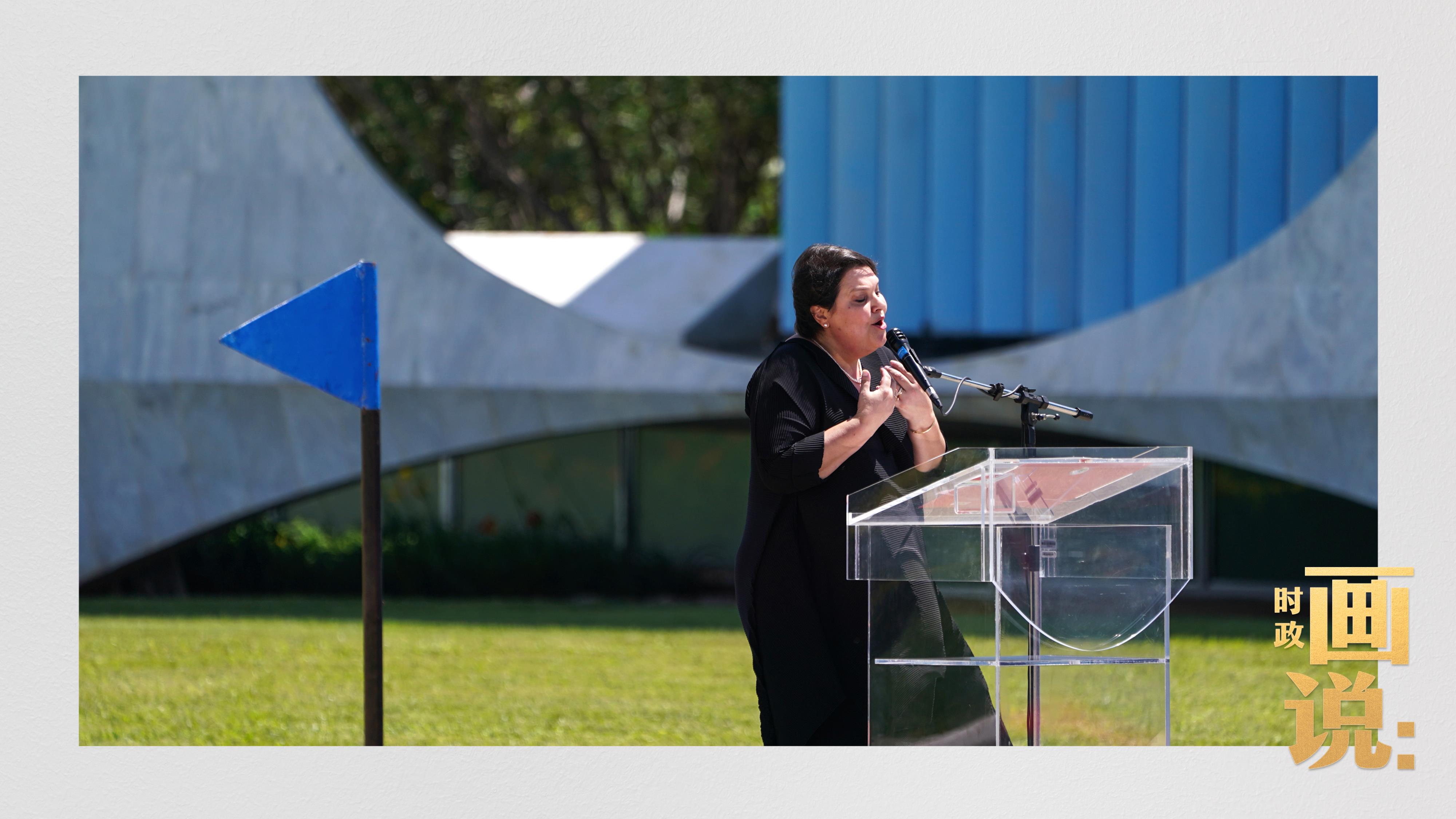 巴西藝術家用中文現場深情演唱中國經典民歌《我的祖國》,這是歡迎儀式的一項特別安排。