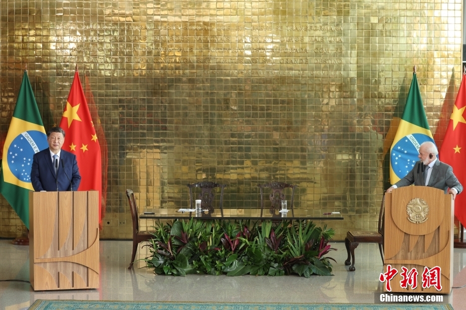 當(dāng)?shù)貢r間11月20日,中國國家主席習(xí)近平在巴西利亞總統(tǒng)官邸同巴西總統(tǒng)盧拉舉行會談。會談后,兩國元首共同會見記者。中新社記者 盛佳鵬 攝