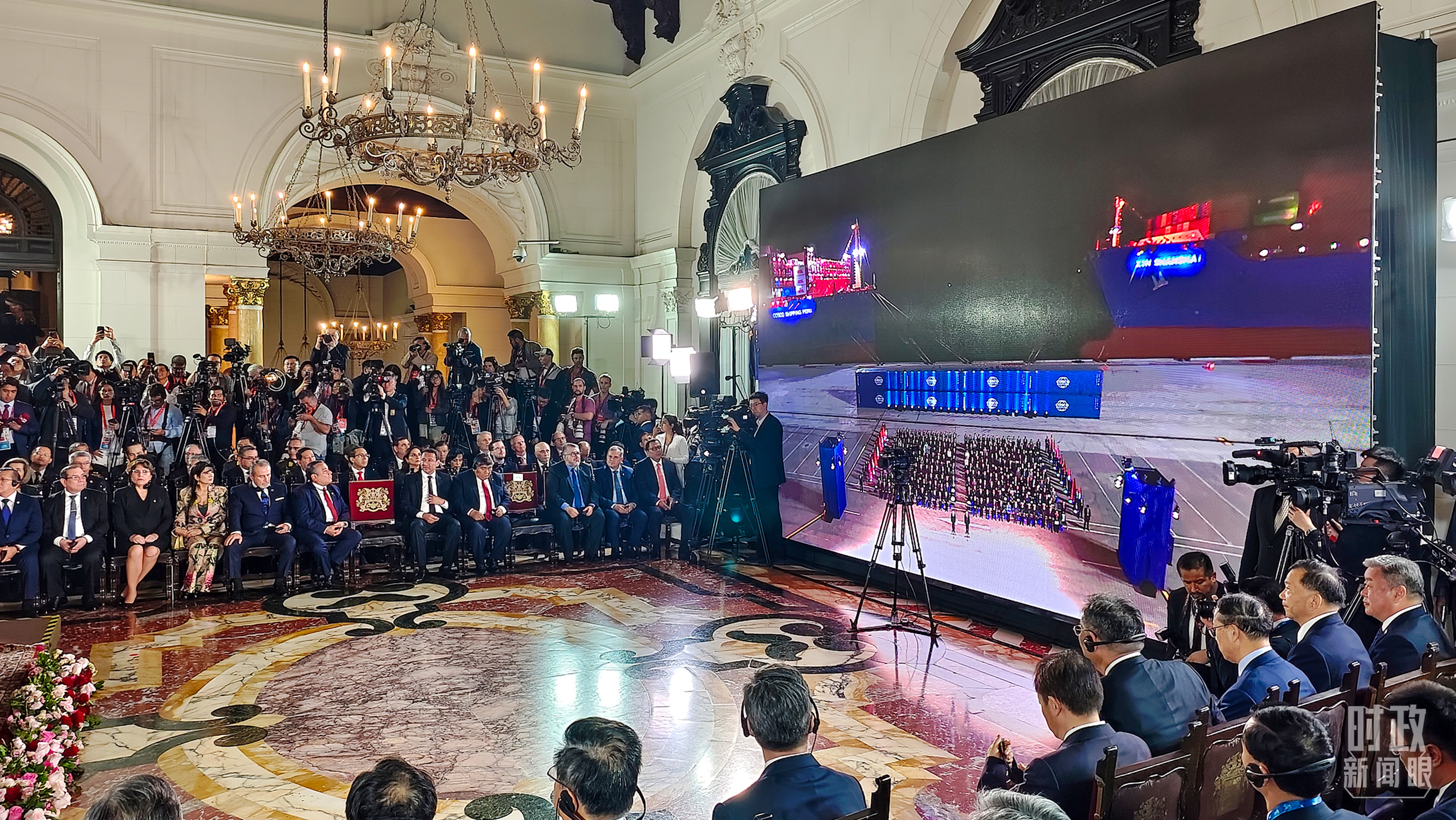 一場儀式,指的是秘魯錢凱港開港儀式。錢凱港是中秘共建“一帶一路”重要項目,也是南美首個智慧港口和綠色港口。此訪期間,兩國元首以視頻方式共同出席開港儀式,下達“開港”指令。隨著錢凱港的開港,中秘間單程海運時間將縮短至23天。這個新港口也見證著一條新時代亞拉陸海新通道的誕生。