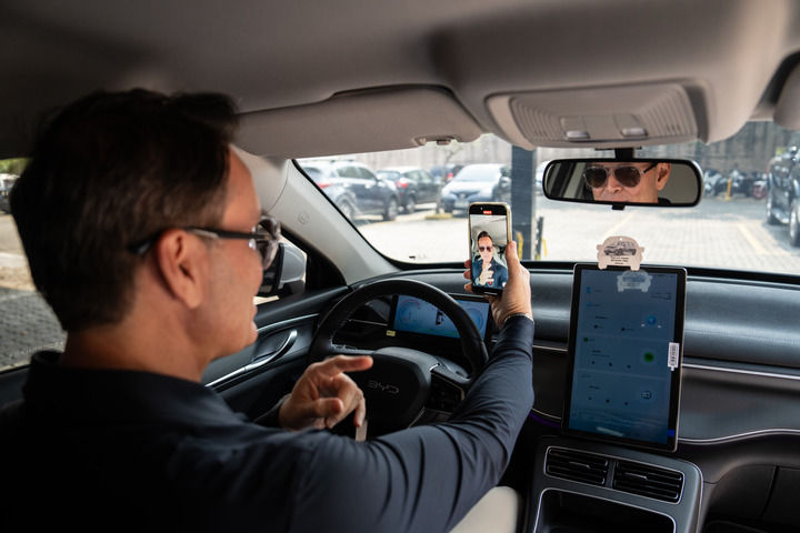 2024年9月2日,巴西網(wǎng)紅費利佩·費拉在里約熱內(nèi)盧的汽車改裝店中錄制視頻。費拉是一名粉絲超過400萬、專門做汽車銷售和改裝的網(wǎng)紅,由于他經(jīng)常推薦純電動或者混合動力新款車型,也被稱為巴西新能源車“民間大使”。每逢周末,費拉都會受邀去各品牌的4S店,包括中國品牌比亞迪在內(nèi)的多家在巴車企都與他簽約,在門店開業(yè)或新車型上市時邀請他出席。新華社記者 王天聰 攝
