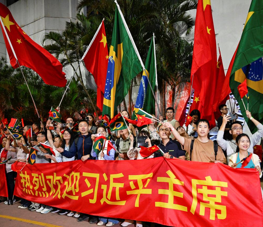 2024年11月,習近平主席在巴西里約熱內盧出席二十國集團領導人第十九次峰會期間,里約熱內盧街頭熱情的歡迎人群。