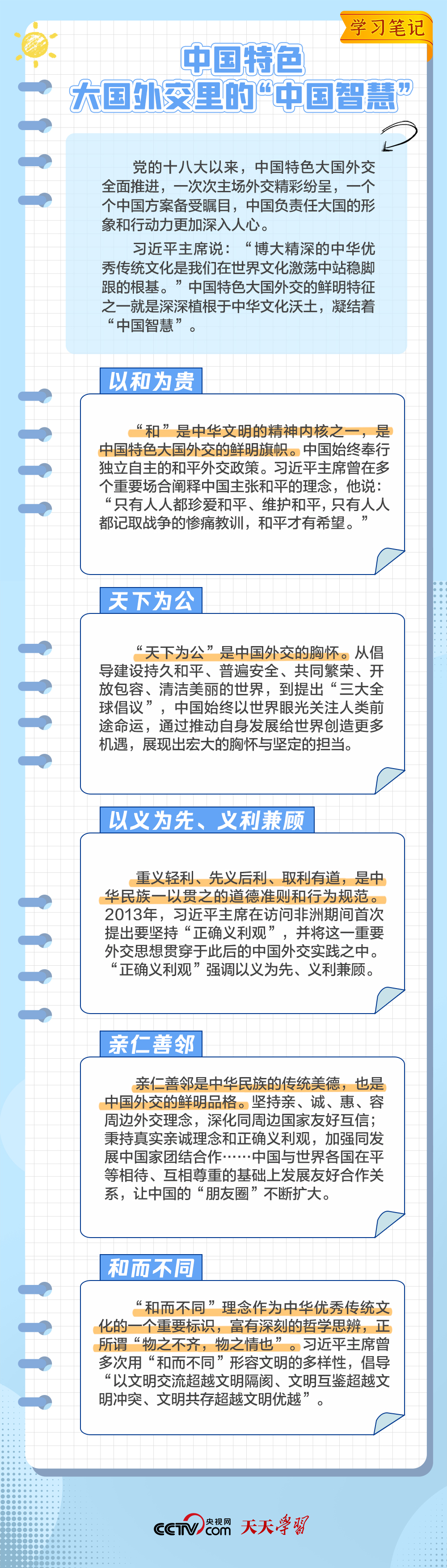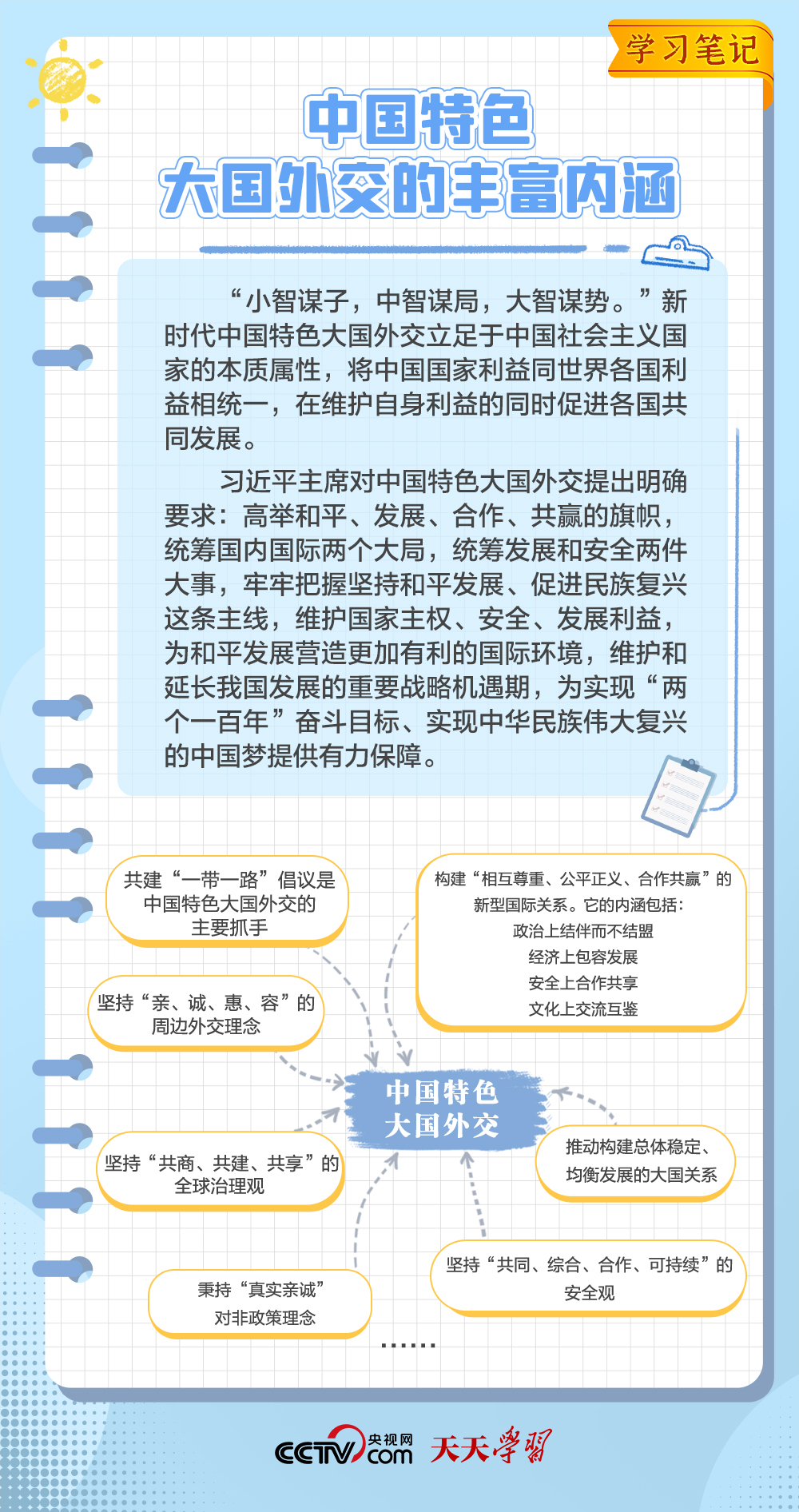 天天學習2014年11月,習近平總書記在中央外事工作會議上指出,中國必須有自己特色的大國外交。