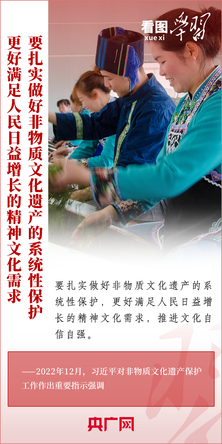 非物質(zhì)文化遺產(chǎn)是中華優(yōu)秀傳統(tǒng)文化的重要組成部分,是中華文明綿延傳承的生動見證。習(xí)近平總書記高度重視推動中華優(yōu)秀傳統(tǒng)文化的創(chuàng)造性轉(zhuǎn)化、創(chuàng)新性發(fā)展,多次對非物質(zhì)文化遺產(chǎn)保護工作作出重要指示,強調(diào)要扎實做好非物質(zhì)文化遺產(chǎn)的系統(tǒng)性保護,推動中華文化更好走向世界。