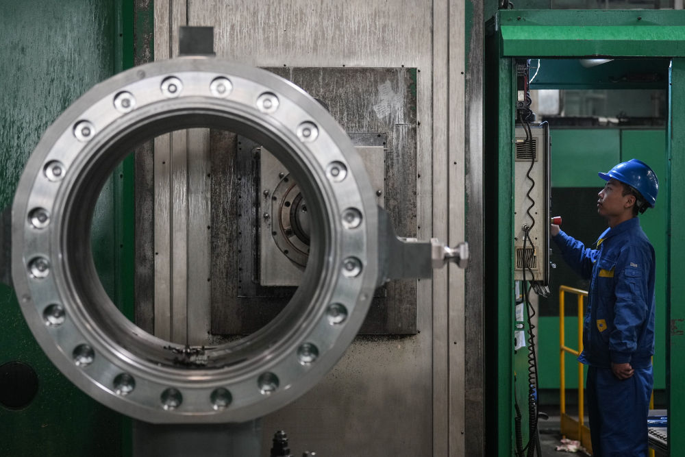 2024年1月11日,工人在大連華銳船用曲軸有限公司加工車間加工產(chǎn)品。新華社記者 潘昱龍 攝