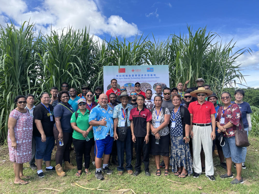 2024年2月28日,來自巴布亞新幾內亞、湯加、庫克群島、薩摩亞、瑙魯等國家的“太平洋島國菌草技術培訓班”學員在斐濟布拉阿格魯菌草技術示范基地合影。新華社發(fā)(中國援斐濟菌草技術示范中心供圖)