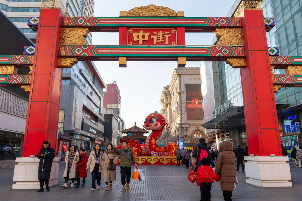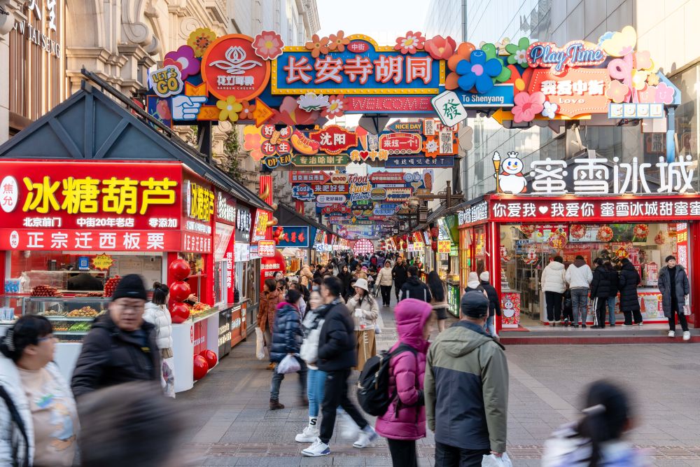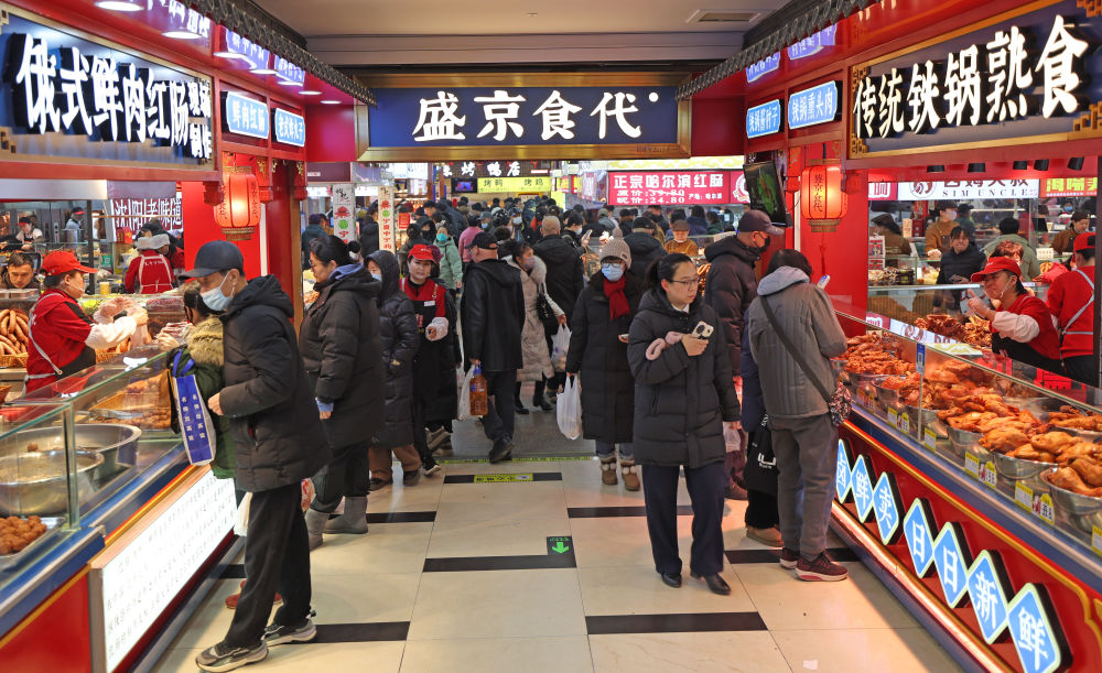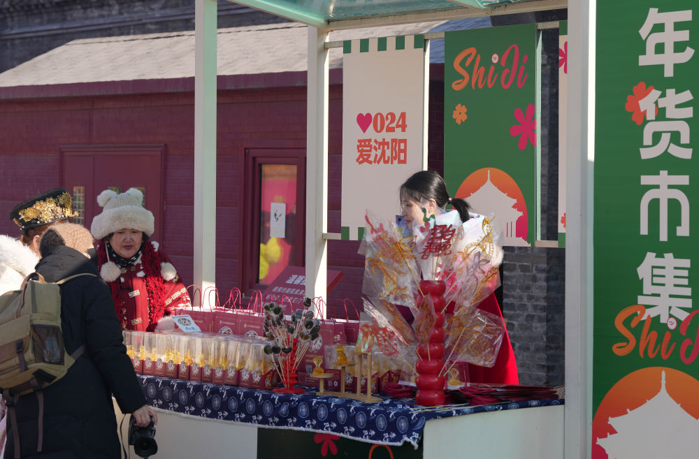 2025年1月22日,游客在沈陽故宮非遺年貨市集游覽消費(fèi)。