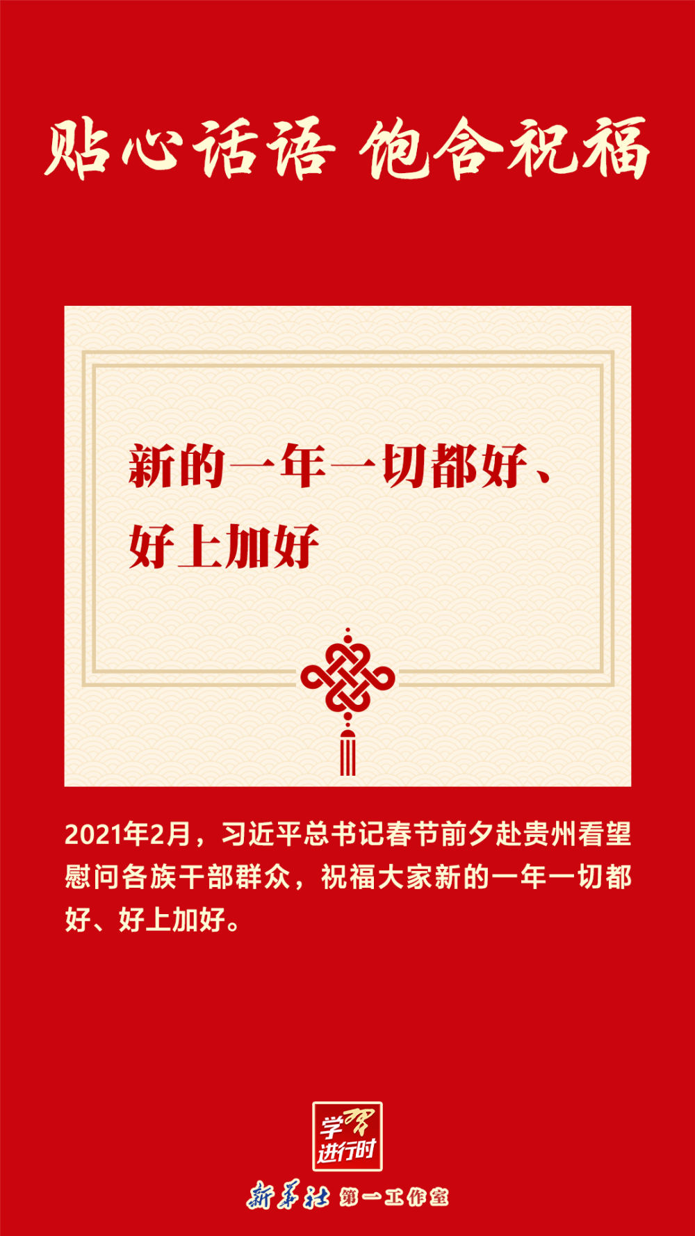 【學(xué)習(xí)進(jìn)行時(shí)】拜年是喜慶的年俗之一?;サ酪宦曔^(guò)年好,傳遞濃濃親情、友情、同志情。習(xí)近平總書記的貼心話語(yǔ),充滿溫暖,飽含祝福。