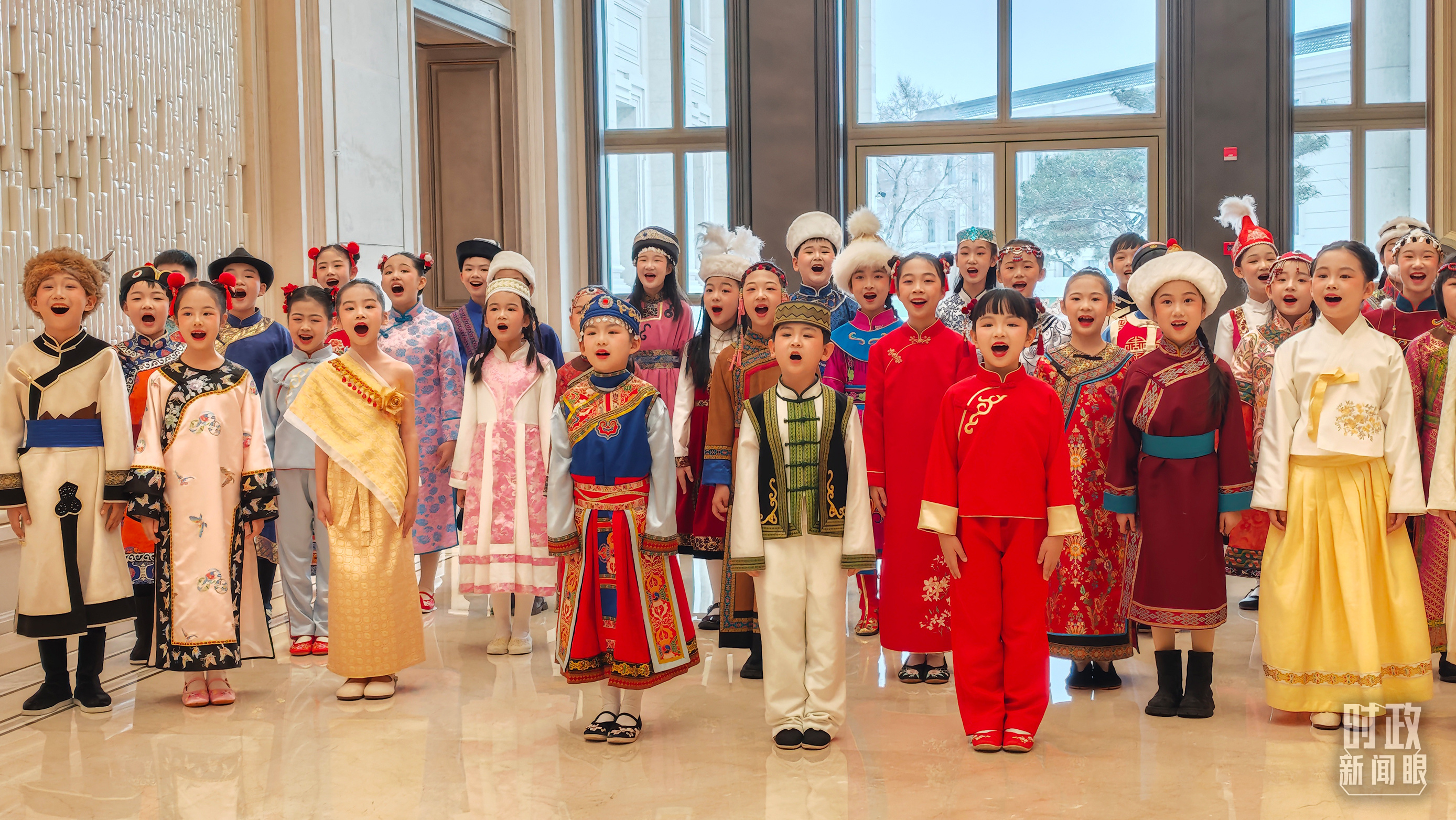 歡迎宴會(huì)現(xiàn)場,少年兒童正在合唱黑龍江民歌《烏蘇里船歌》。(總臺(tái)央視記者閆耀東拍攝)