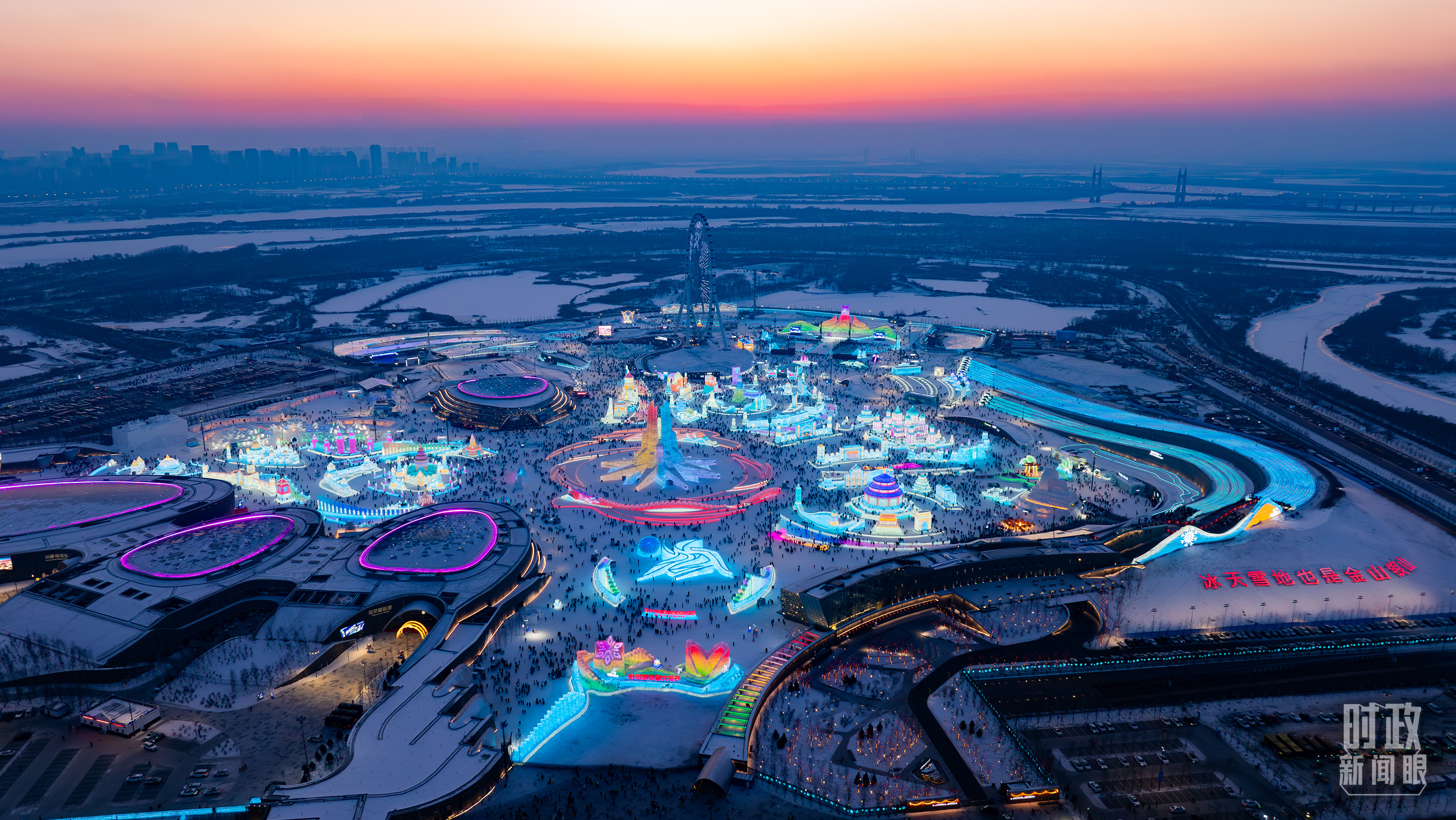 俯瞰哈爾濱冰雪大世界。(總臺(tái)記者邵沖拍攝)