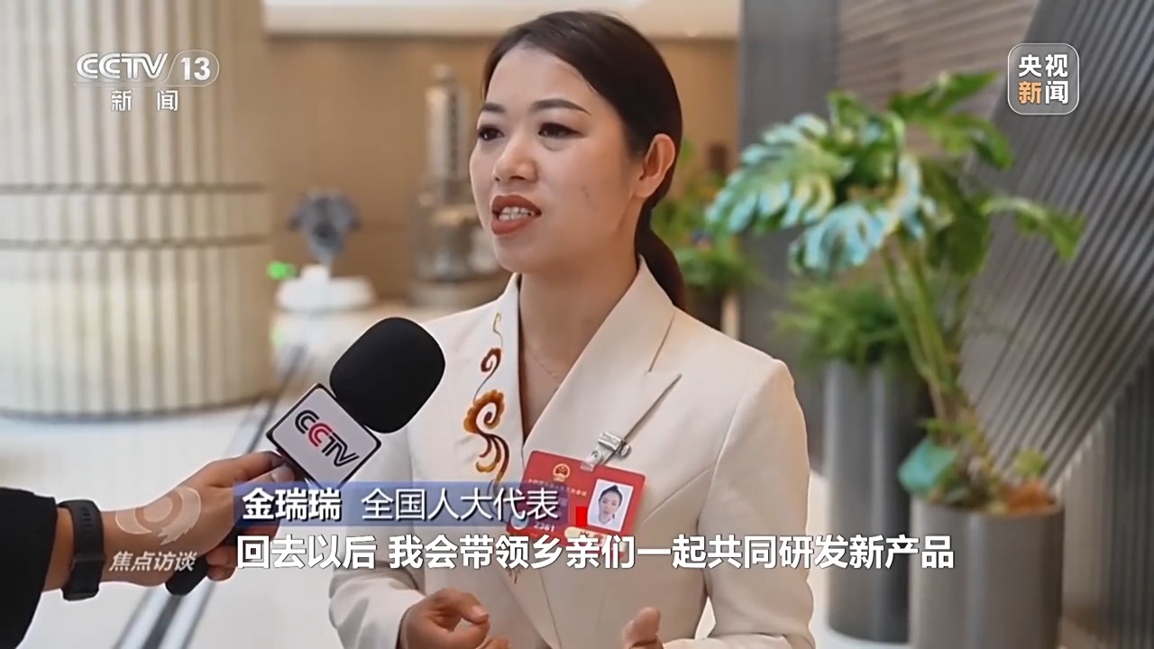 全國(guó)人大代表 金瑞瑞:方向和路徑都非常清晰,回去以后,我會(huì)帶領(lǐng)鄉(xiāng)親們一起共同研發(fā)新產(chǎn)品,把非遺手工的技藝傳承好和發(fā)揚(yáng)好,帶著鄉(xiāng)親們共同賺錢,把全國(guó)兩會(huì)擘畫(huà)的美好愿景轉(zhuǎn)化為實(shí)實(shí)在在的成績(jī)和收獲。