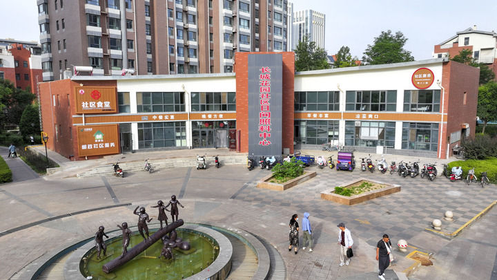 這是2024年6月20日拍攝的寧夏銀川市金鳳區(qū)長城花園社區(qū)日間照料中心(無人機照片)。