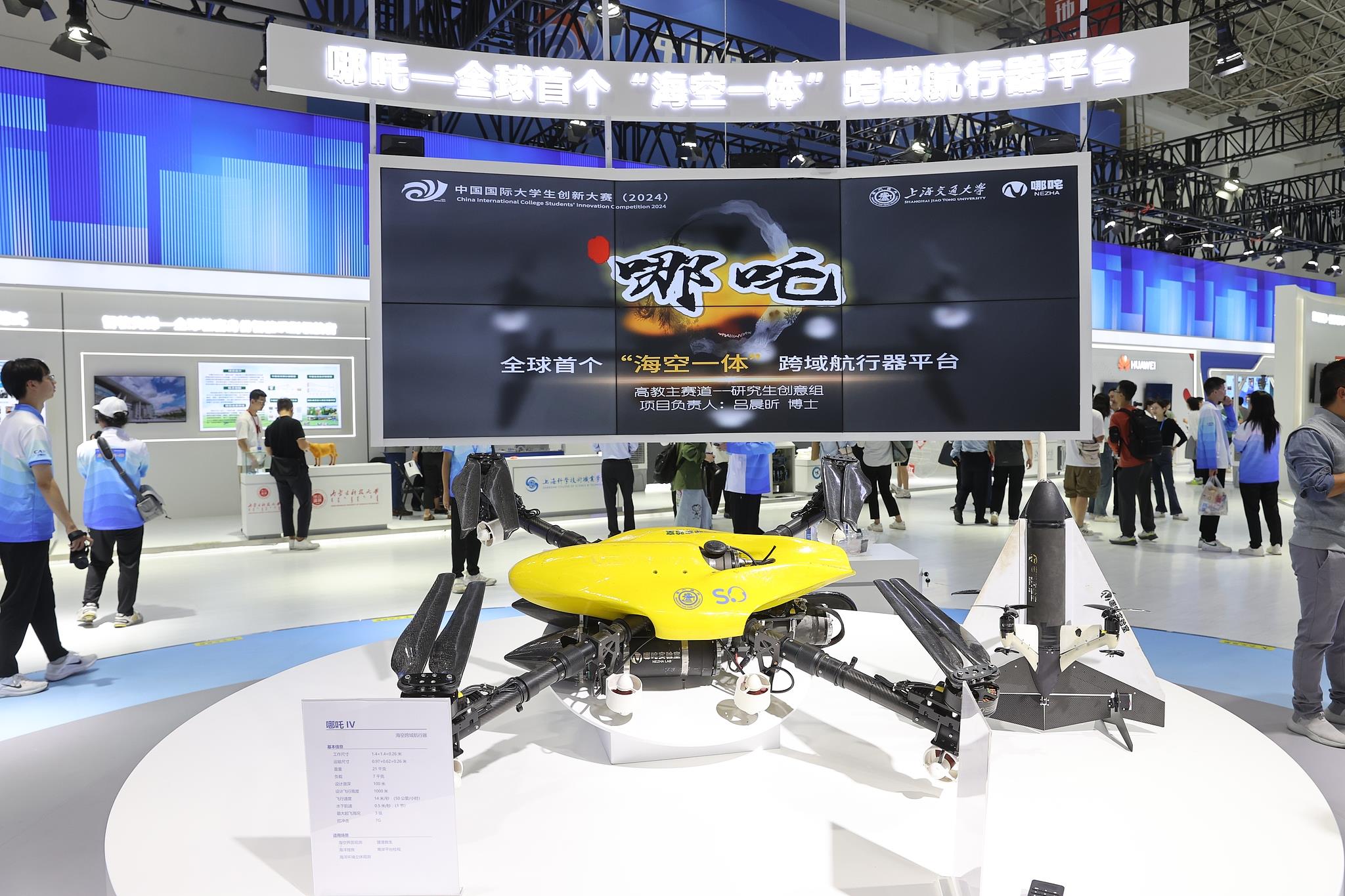 2024年10月12日至15日,中國國際大學(xué)生創(chuàng)新大賽總決賽及同期活動在上海舉行。來自上海交通大學(xué)的“哪吒——全球首個‘??找惑w’跨域航行器平臺”項(xiàng)目奪得冠軍。