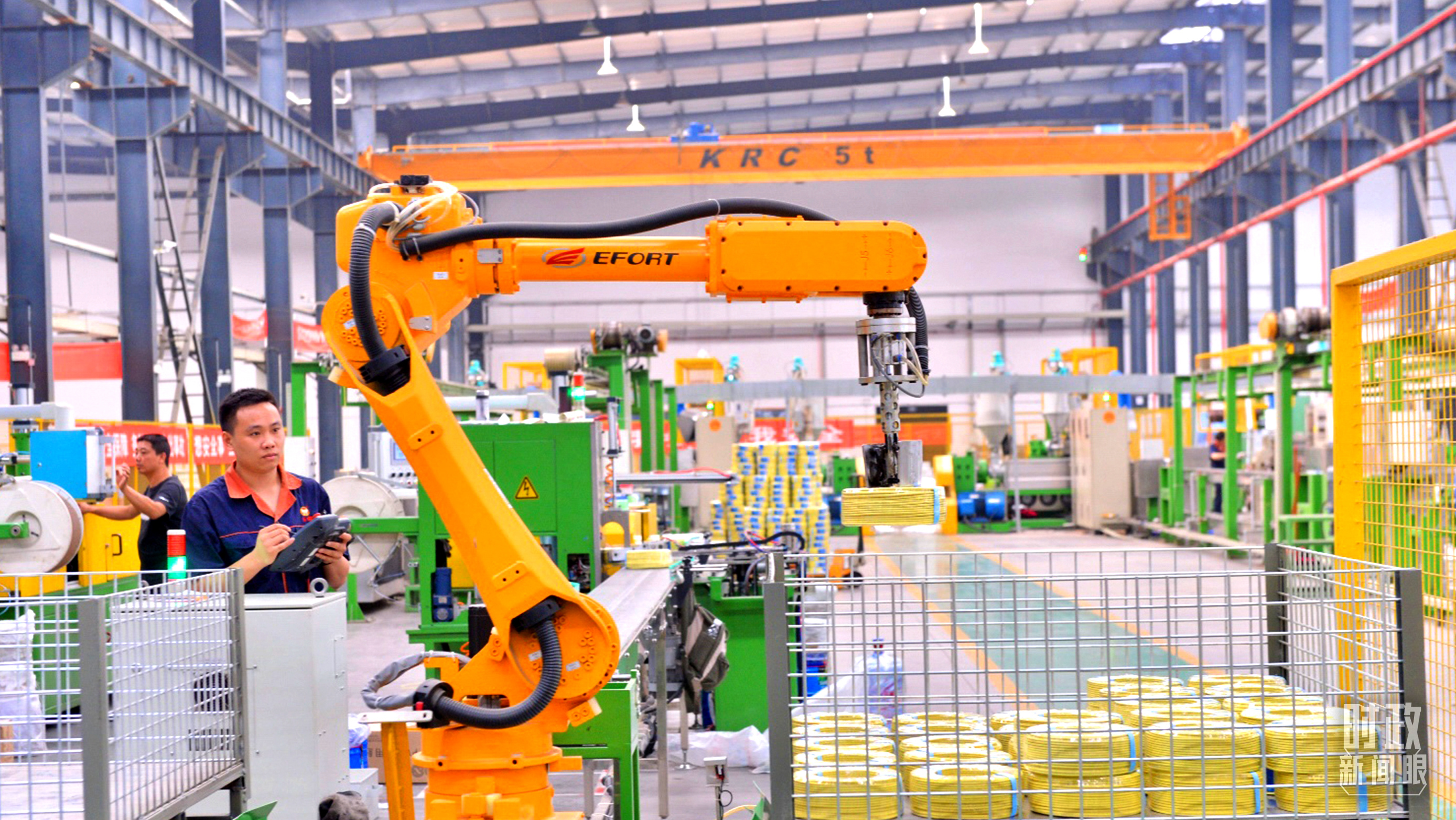 貴州省貴陽(yáng)市一家電線(xiàn)電纜企業(yè)的智能制造及智能倉(cāng)儲(chǔ)一體化車(chē)間。(總臺(tái)記者張秀練拍攝)