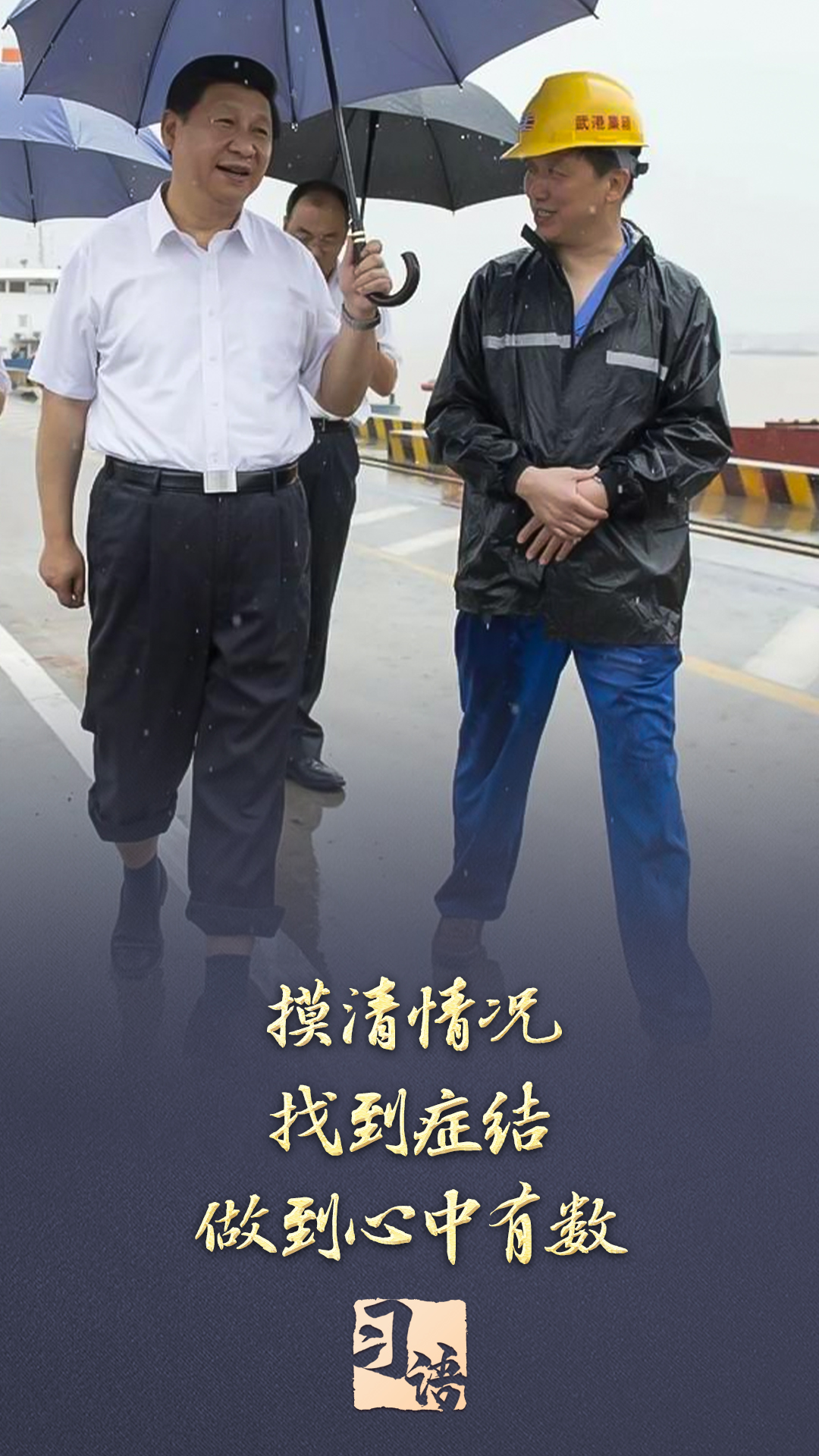2013年7月,習(xí)近平總書記冒雨來到湖北武漢新港陽邏集裝箱港區(qū)考察,他卷起褲腿,打著雨傘,蹚著積水邊走邊看邊問。兩天后,在武漢主持召開部分省市負(fù)責(zé)人座談會時(shí),習(xí)近平總書記強(qiáng)調(diào):“研究、思考、確定全面深化改革的思路和重大舉措,刻舟求劍不行,閉門造車不行,異想天開更不行,必須進(jìn)行全面深入的調(diào)查研究?!?/p>