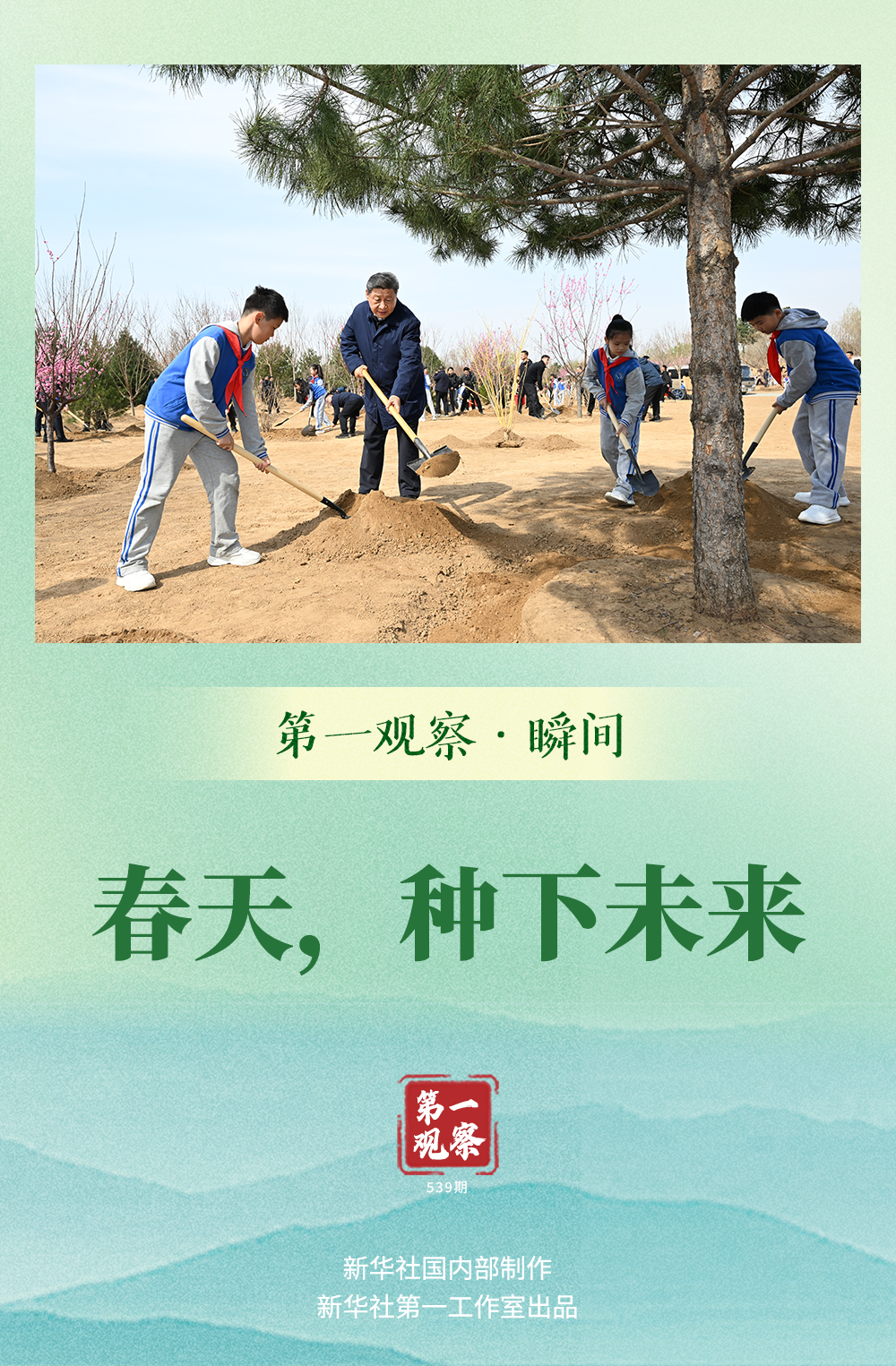 今天種下新綠,小小樹苗將長成參天大樹、連片成林,祖國大地綠意盎然、生機勃發(fā)。今天播撒希望,孩子們終將成為社會發(fā)展的棟梁之才,強國建設、民族復興更有接續(xù)奮斗的力量。