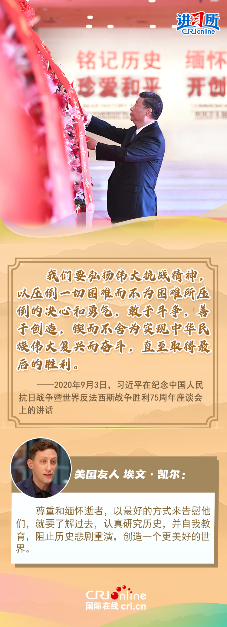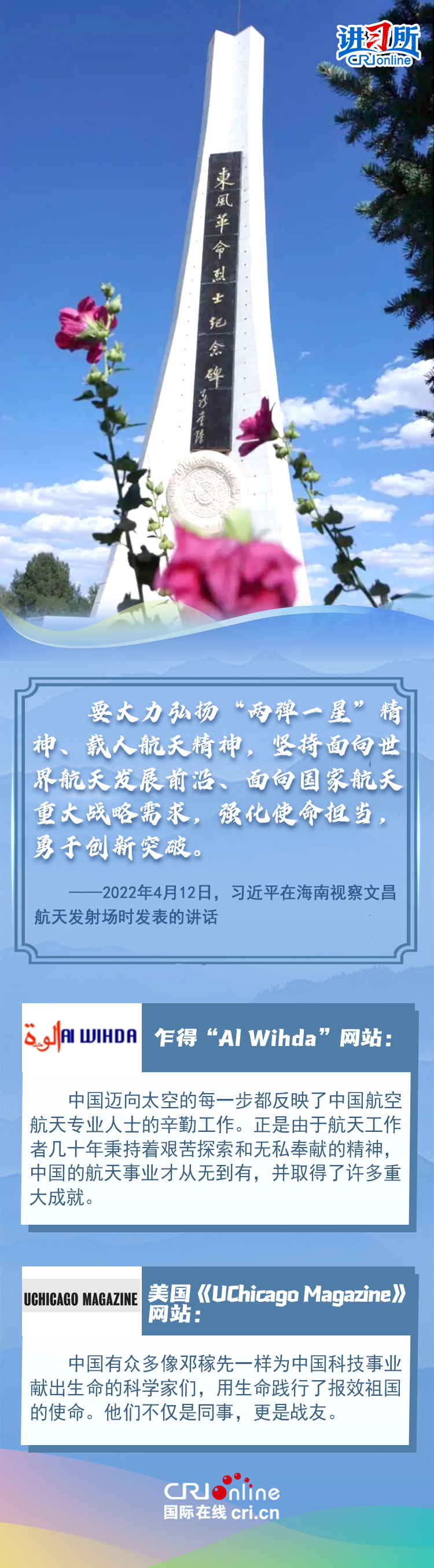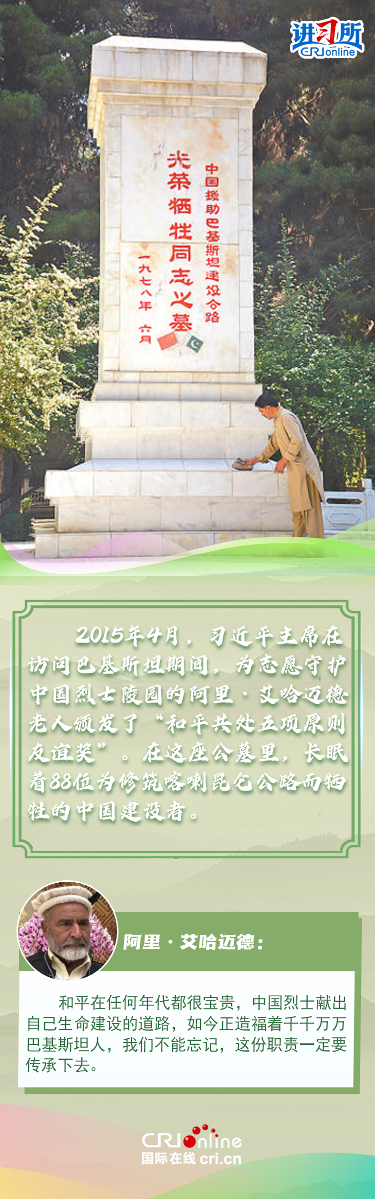 新時(shí)代以來(lái),從設(shè)立烈士紀(jì)念日到出臺(tái)英雄烈士保護(hù)法,再到加強(qiáng)烈士紀(jì)念設(shè)施保護(hù),中國(guó)崇尚英雄、學(xué)習(xí)英雄的社會(huì)風(fēng)尚贏得國(guó)際社會(huì)贊譽(yù)。在國(guó)際人士眼中,中國(guó)多年來(lái)飛躍式的進(jìn)步和發(fā)展,離不開(kāi)人們對(duì)先輩意志的繼承與實(shí)踐。