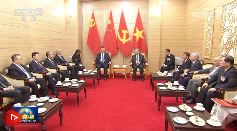 習(xí)近平指出,這次訪問時間雖短,但活動豐富、成果豐碩。雙方重申共同壯大世界社會主義事業(yè)的政治意愿,都期待朝著“六個更”總體目標(biāo)全面推進(jìn)兩國戰(zhàn)略合作,都表示抵御外部風(fēng)險(xiǎn)挑戰(zhàn),維護(hù)地區(qū)和平穩(wěn)定和國際公平正義。我對中越關(guān)系發(fā)展前景充滿信心。雙方要全面落實(shí)這次訪問成果,持續(xù)推進(jìn)中越命運(yùn)共同體建設(shè)。