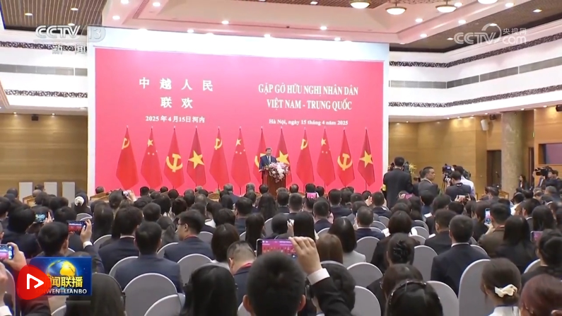 4月15日上午,中共中央總書記、國家主席習(xí)近平在河內(nèi)國際會(huì)議中心同越共中央總書記蘇林、越南國家主席梁強(qiáng)共同會(huì)見中越人民大聯(lián)歡活動(dòng)代表。